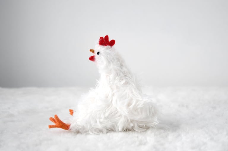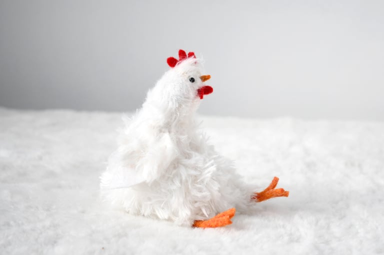 Chicken is all hand sewn from the nicest, plouffy plush with wool felt details.