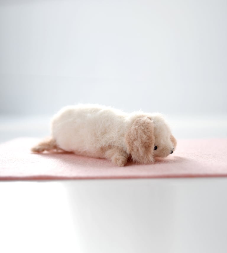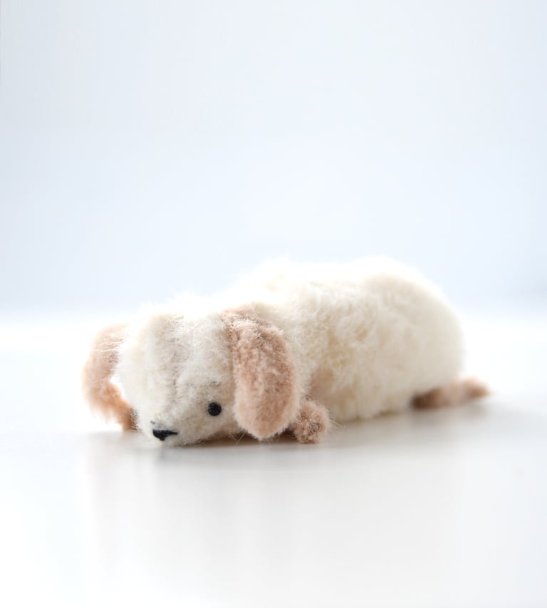this tiny guy is hand sewn from the softest faux fur in cream and tan. stuffed with weighted beads for extra flop factor.